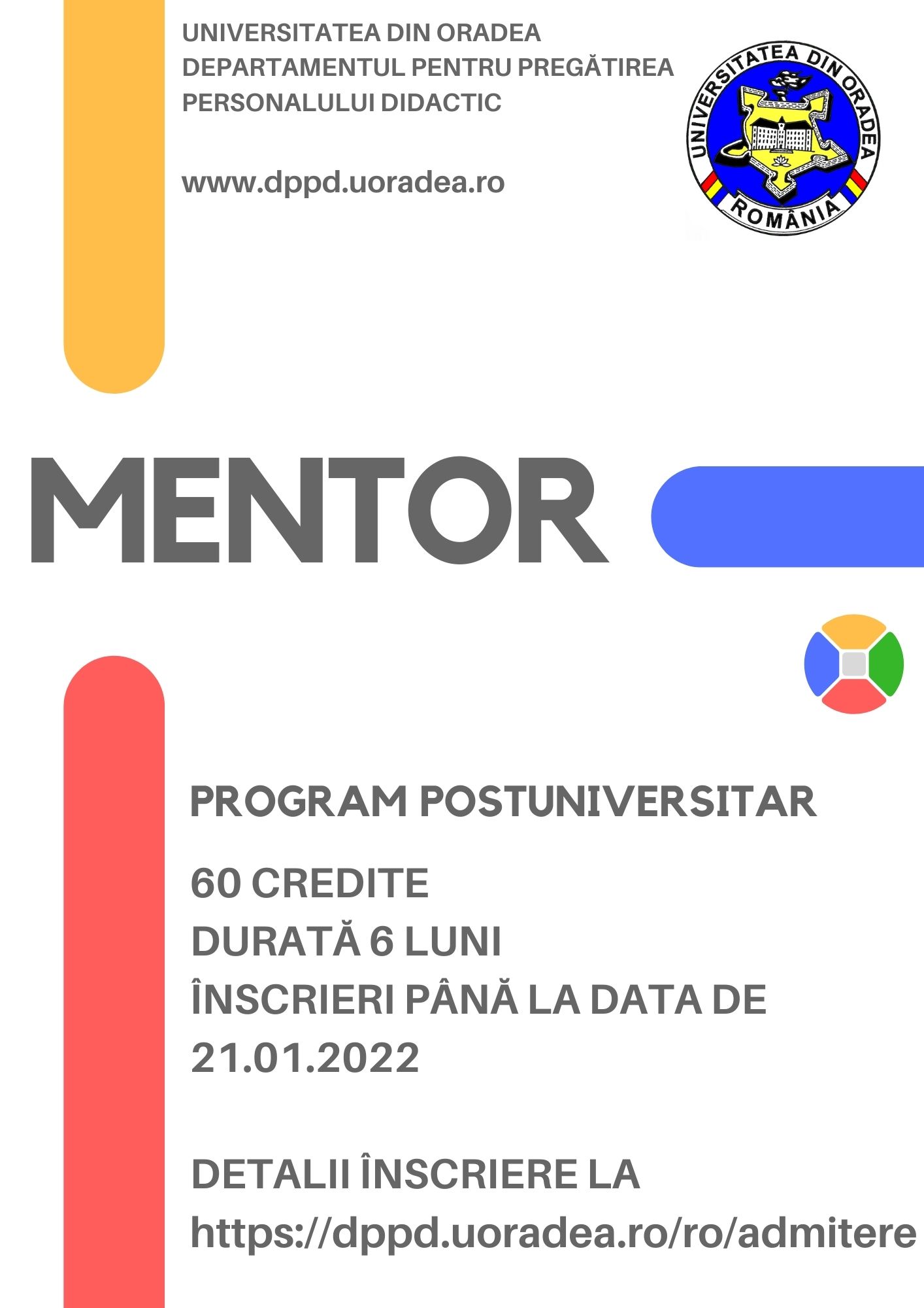 MENTOR, MANAGEMENT EDUCAȚIONAL, PSIHOPEDAGOGIE SPECIALĂ ȘCOLARĂ, DESIGNER INSTRUCȚIONAL - detalii la secțiunea ADMITERE