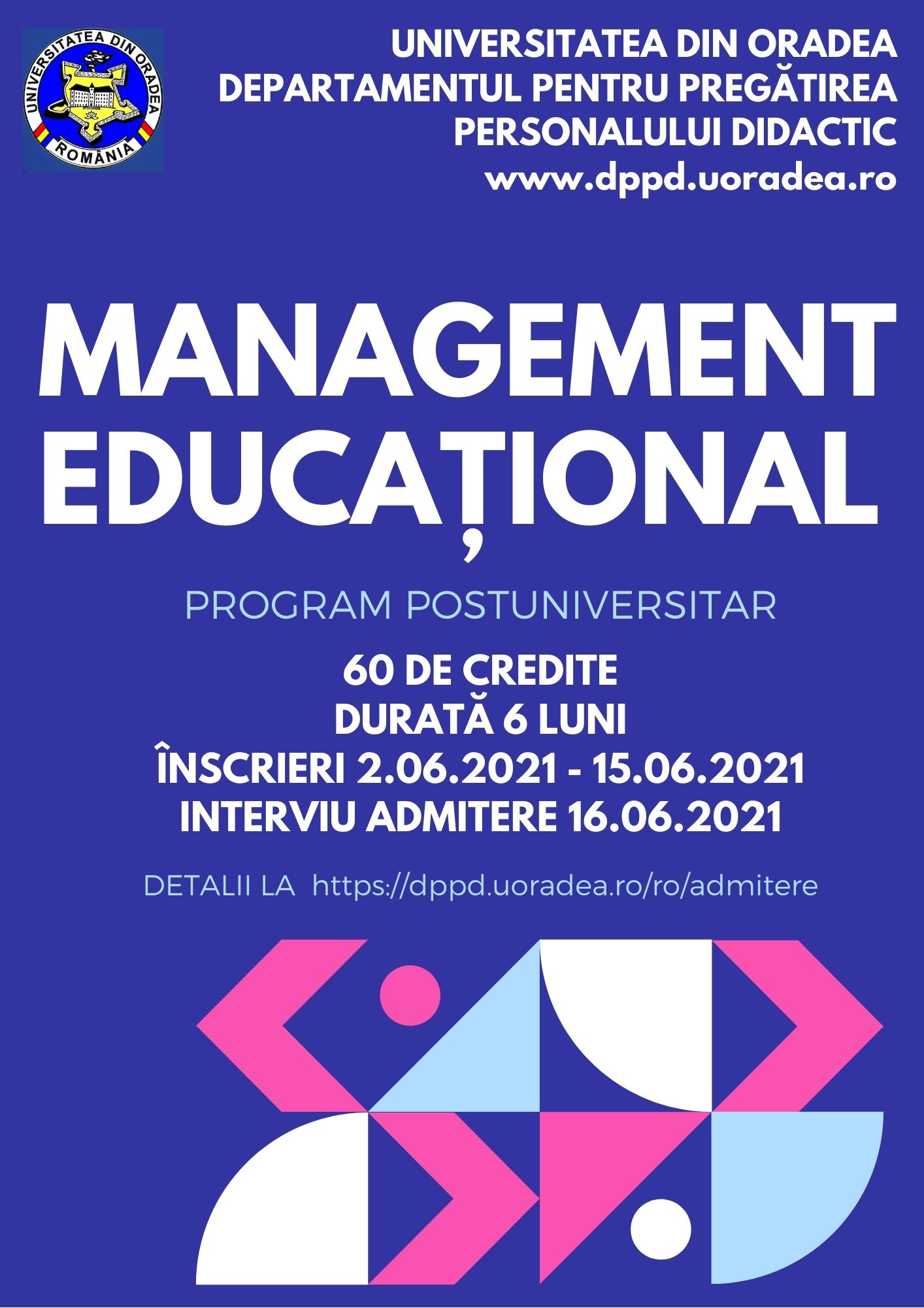 EXAMENE ȘI FINALIZARE STUDII MANAGEMENT EDUCAȚIONAL IULIE 2024