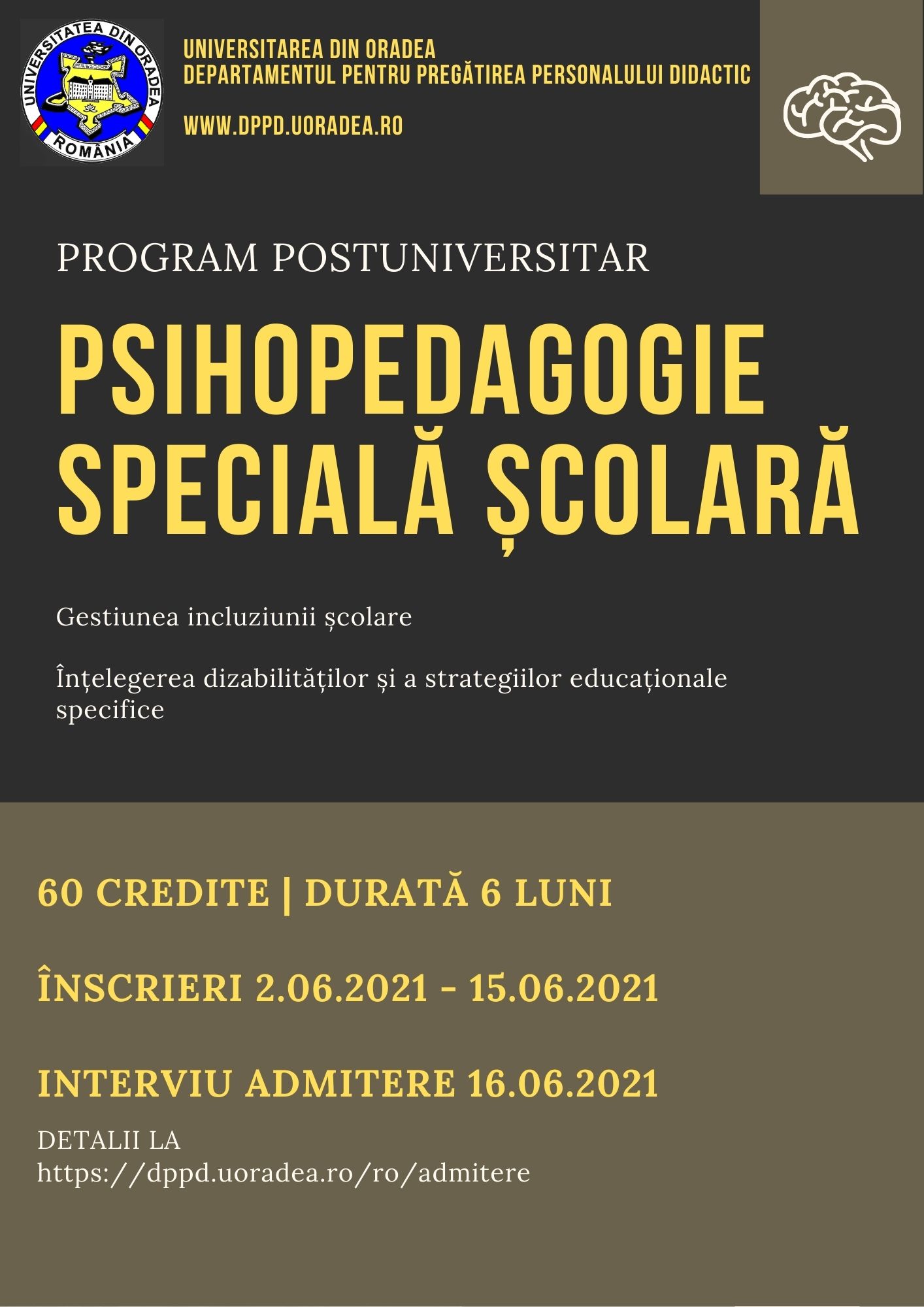 Înscrieri PROGRAM POSTUNIVERSITAR DE FORMARE ȘI DEZVOLTARE PROFESIONALĂ CONTINUĂ - PSIHOPEDAGOGIE SPECIALĂ ȘCOLARĂ