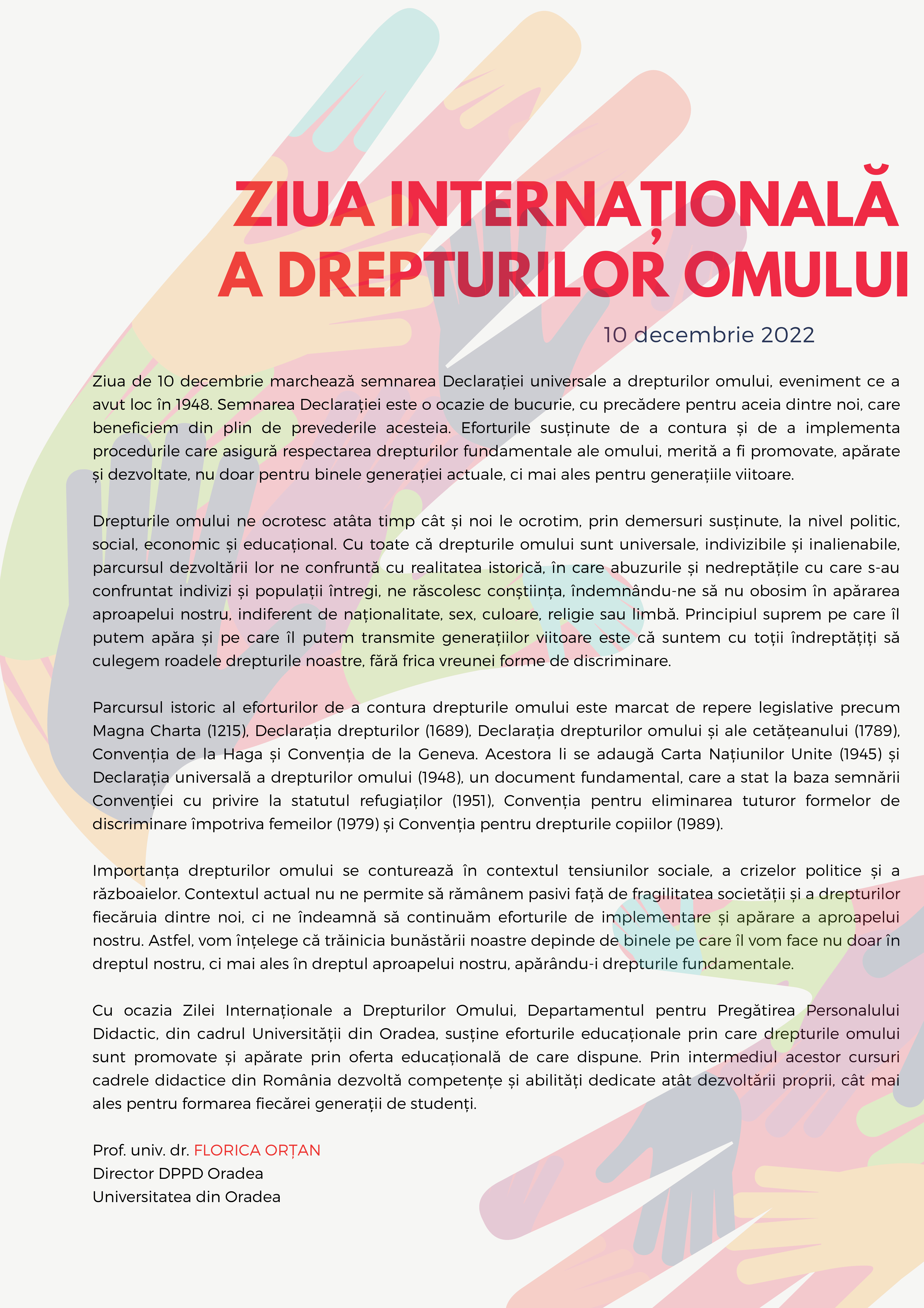 UPDATE 15.06.2020 - Studenții care urmează studiile postuniversitare de formare psihopedagogică (NIVELUL I și NIVELUL II) și care nu reușesc să trimită portofoliul online, îl pot aduce în data de 20.06.2020 ora 10:00 la Universitatea din Oradea - predarea va avea loc în curtea instituției unde secretariatul D.P.P.D. va amenaja un spațiu în conformitate cu reglementările specifice perioadei stării de alertă.
