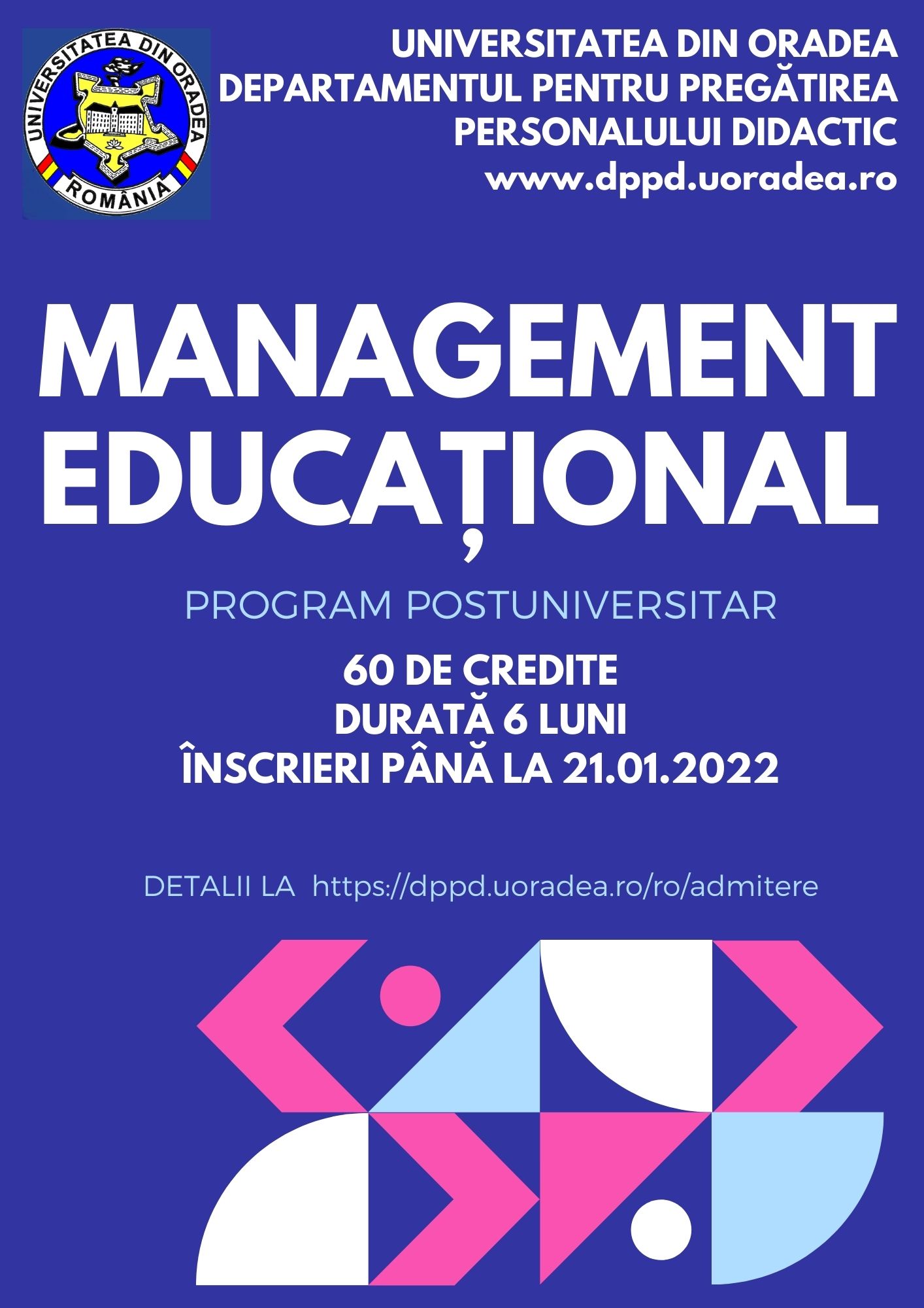 Înscrieri PROGRAMELE POSTUNIVERSITARE DE FORMARE ȘI DEZVOLTARE PROFESIONALĂ CONTINUĂ - MANAGEMENT EDUCAȚIONAL / MENTOR